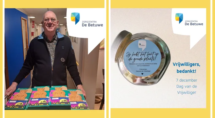 Neem bijvoorbeeld Jan. Als vrijwilliger bij locatie Zorgcentrum De Valentijn is hij een bekend gezicht voor zowel bewoners als medewerkers. Met zijn groene vingers onderhoudt hij het terras en de buitenplanten, maar hij doet nog veel meer. Hij helpt bij de spelletjesmiddag, zet alles klaar voor de weekafsluiting op vrijdagavond en verwelkomt nieuwe bewoners met een bloemetje of presentje. En als er andere klusjes zijn, zoals speculaaspoppen uitdelen, staat hij meteen klaar om te helpen.